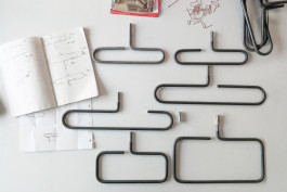 The idea of magnification and formal reinterpretation of the conventional wall hook forms the concept of the product. The hooks will be fixed with a standardized brass dowel in the wall and can be arranged freely. Different versions of the hook allow multiple possibilities for suspension and work both horizontally and vertically.