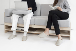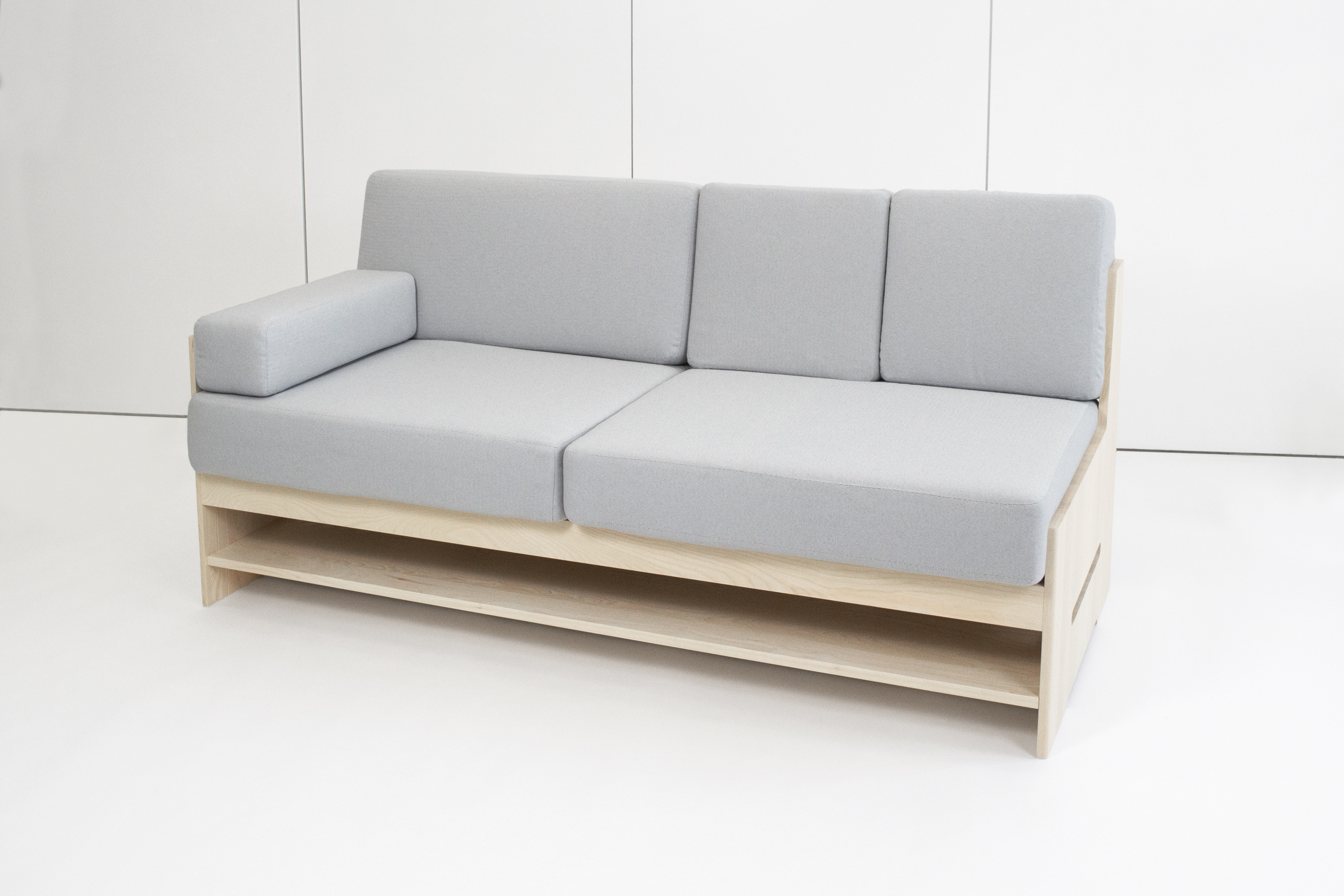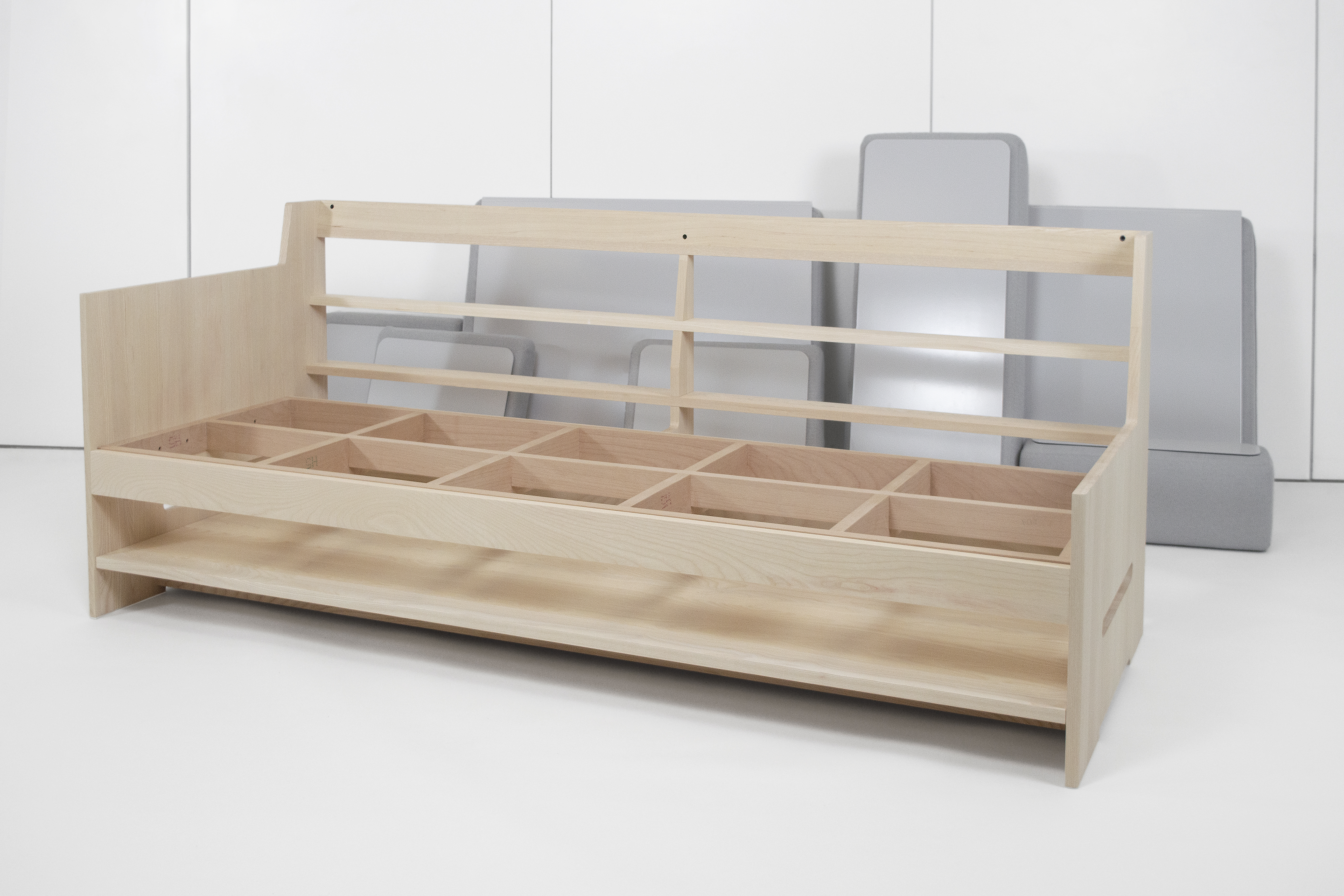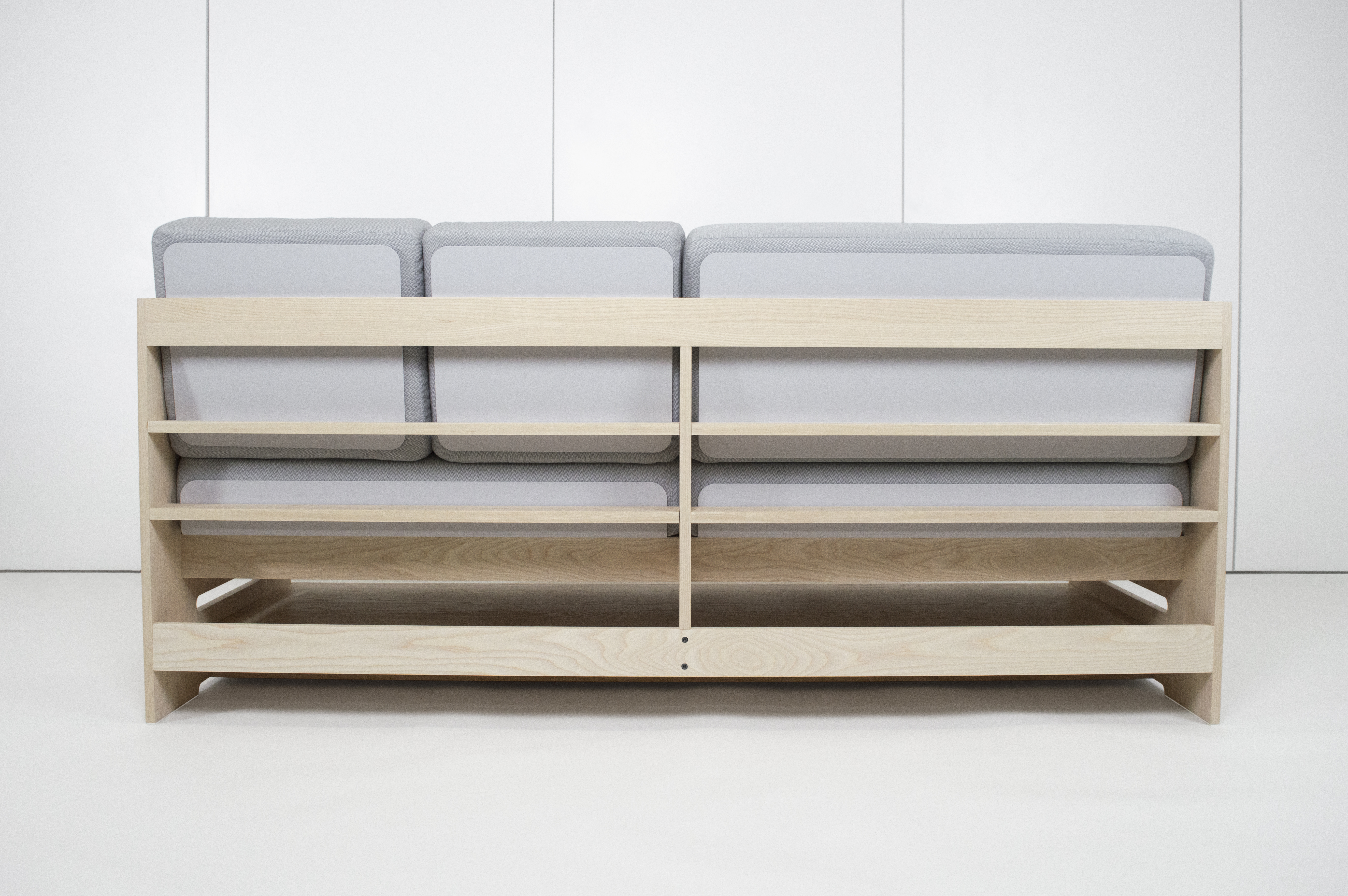 The „Shift Sofa“ defines a modern type of sofa furniture, that enables a versatile use of it‘s back cushions to fit different needs and situations in the home. It consists of just a few separable parts which makes it flat packable and enables to properly replace or recycle all of its components.